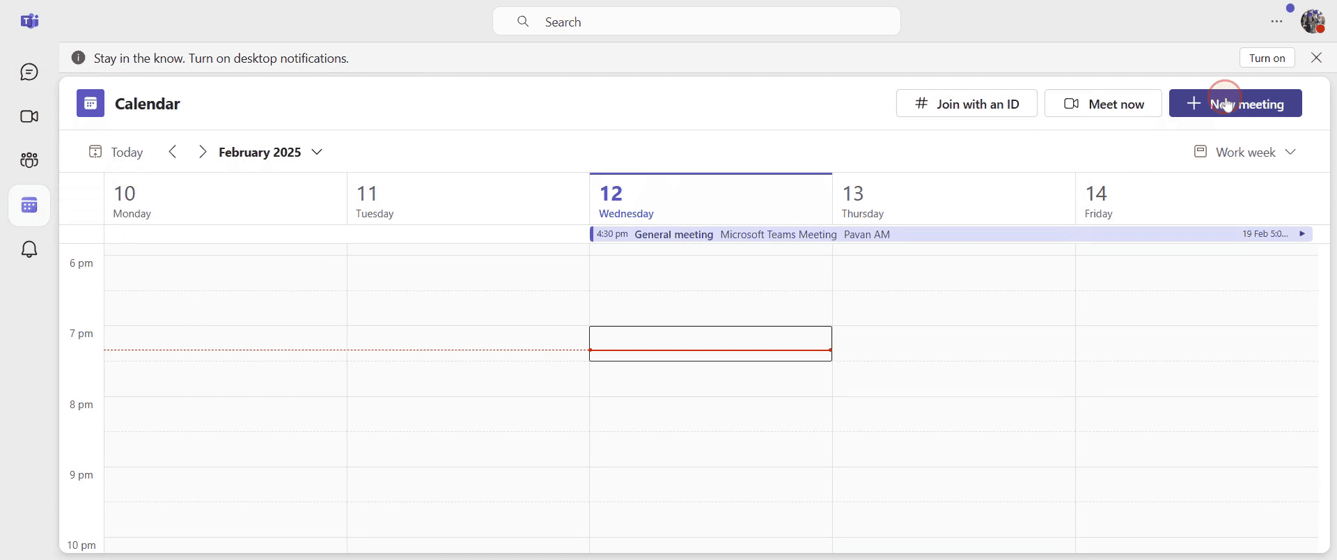 Haga clic en la opción "Nueva reunión" para comenzar a configurar su reunión.