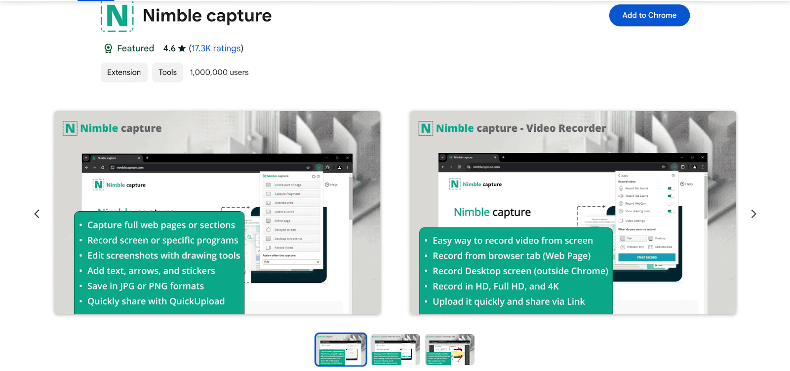 Nimbus Capture propose une extension dynamique d'enregistrement d'écran pour Chrome qui se distingue par sa flexibilité et ses outils robustes de montage vidéo. Avec la possibilité de capturer des pages web entières ou des sections spécifiques de votre écran, elle est idéale pour une variété de besoins, de la création de tutoriels au reporting. Après l'enregistrement, vous pouvez annoter et modifier vos vidéos facilement, ce qui la rend parfaite pour des présentations professionnelles ou des projets occasionnels.