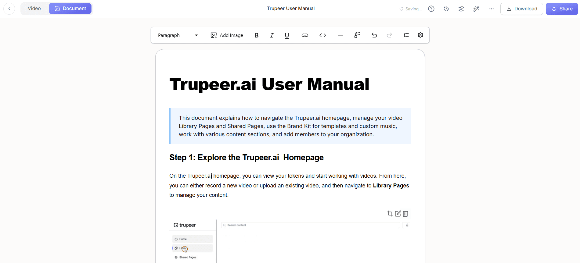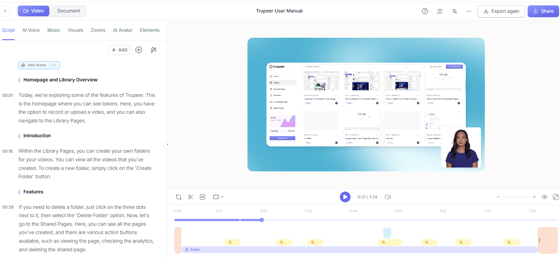 Trupeer propose une suite de fonctionnalités conçues pour convertir efficacement des enregistrements mobiles bruts en vidéos de formation soignées.