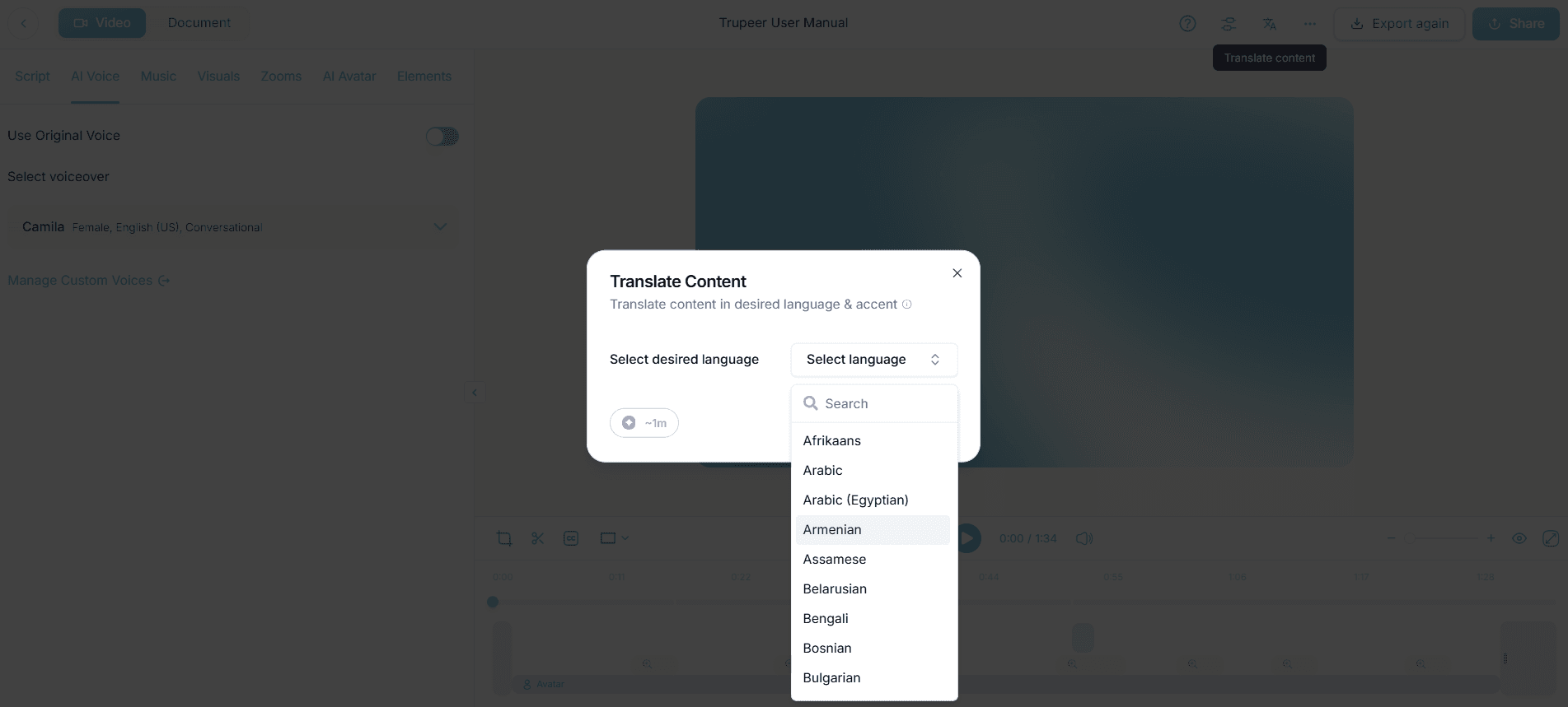 Prenez en compte les besoins linguistiques. Si votre public est multilingue, profitez des fonctionnalités de traduction de Trupeer pour créer un contenu accessible à tous les utilisateurs.