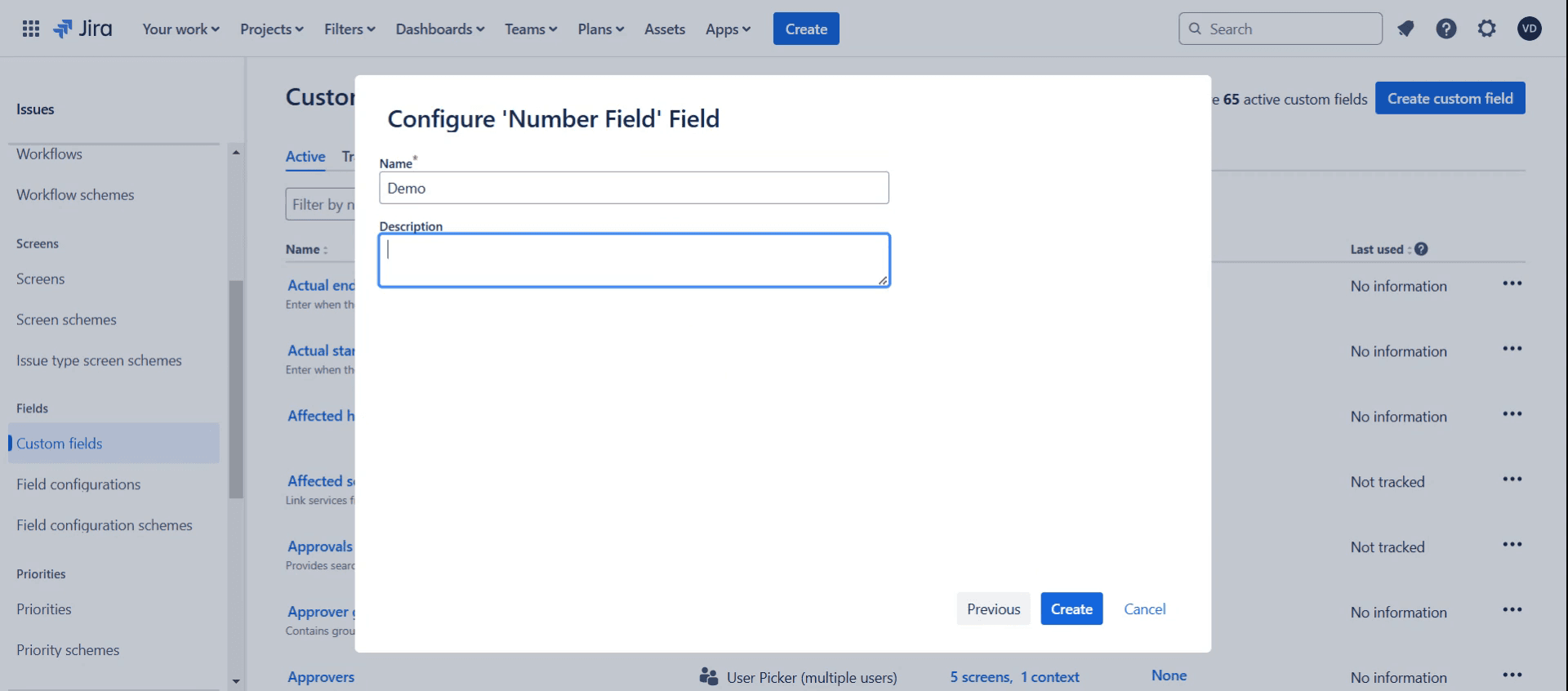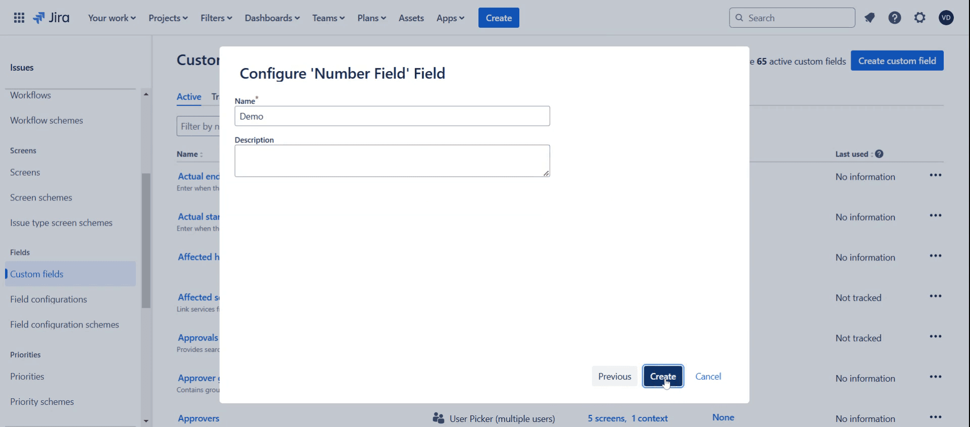 Aggiungi il campo alle schermate – Dopo aver creato il campo, assegnalo alle schermate pertinenti in Jira Settings > Issues > Screens per renderlo visibile durante la creazione o la modifica di un issue.