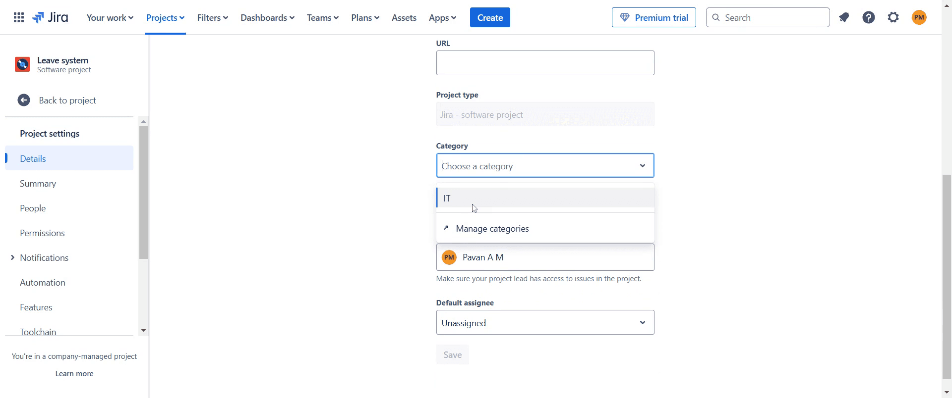 Modifica le impostazioni del progetto e cambia o rimuovi la categoria assegnata.Posso rinominare una categoria in Jira?