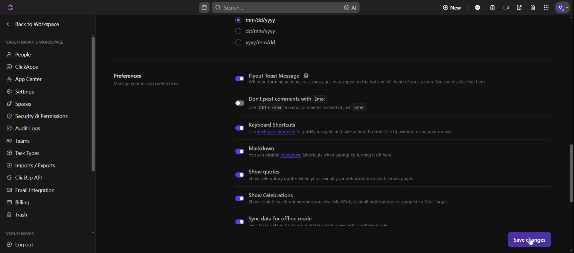 ClickUpでQuickswitchを設定する方法