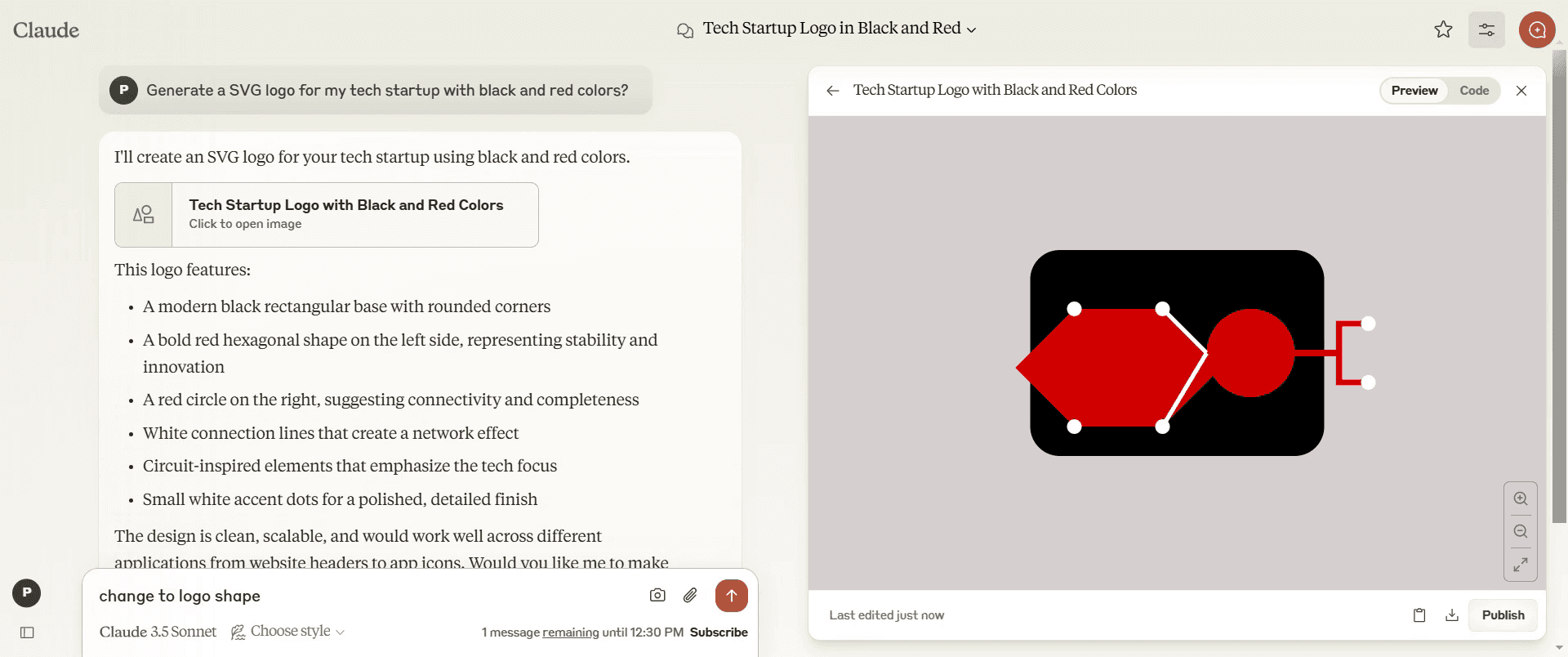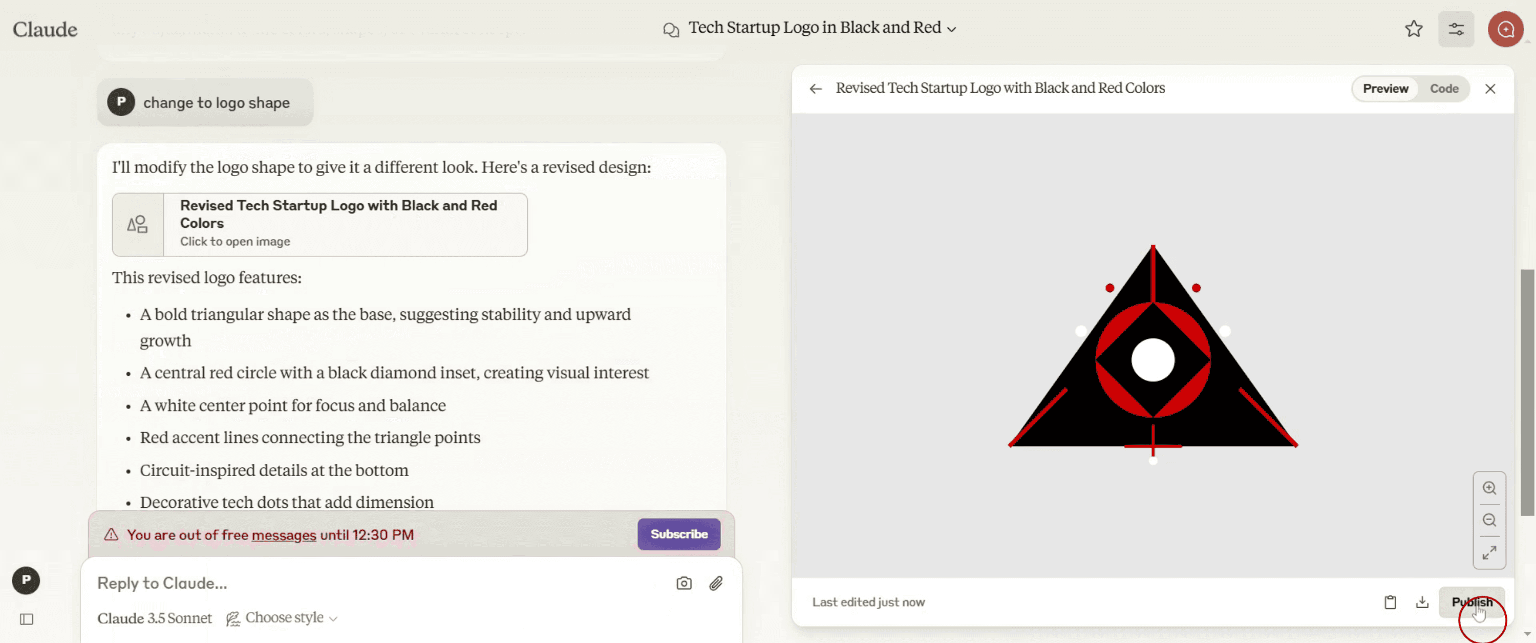 Assim que estiver satisfeito com as modificações, clique no botão "Publish" para finalizar e publicar o seu logótipo.