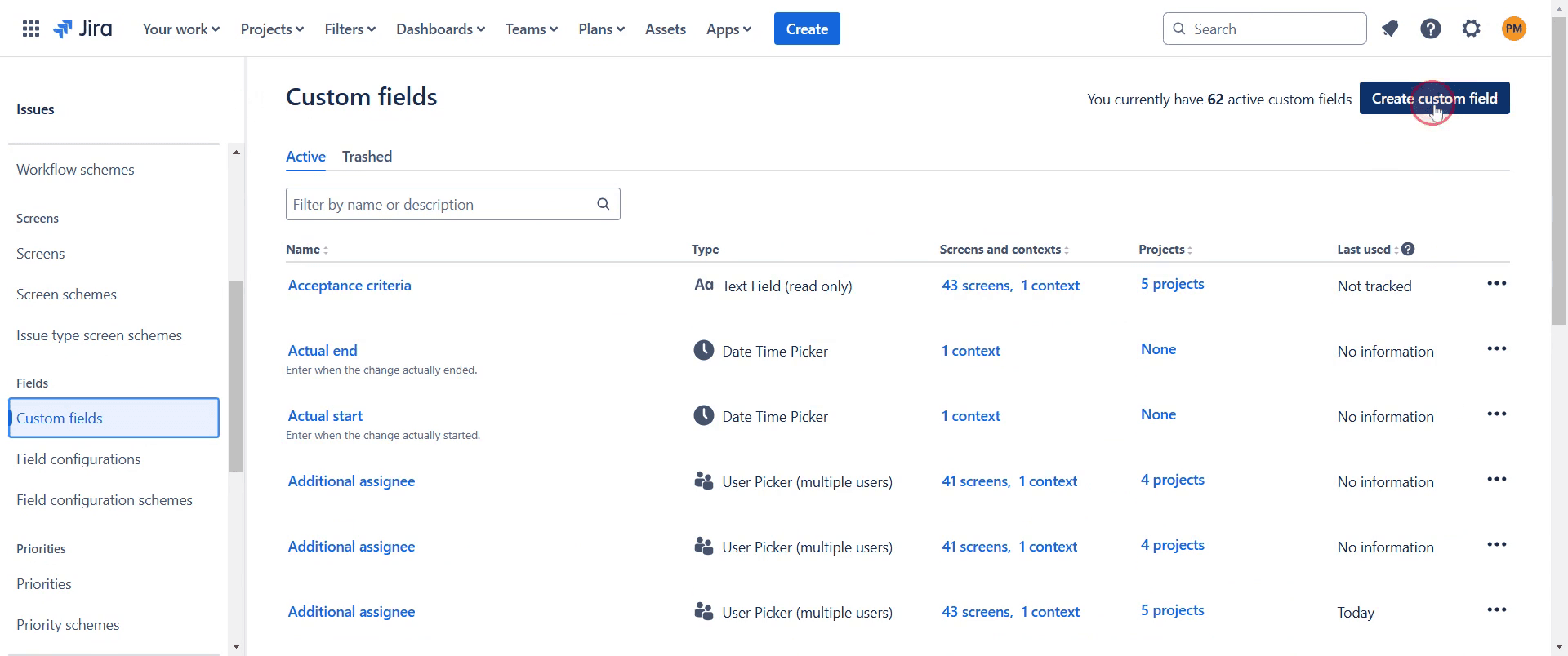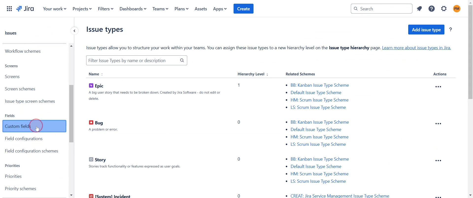 Find and click on the "Custom fields" option.