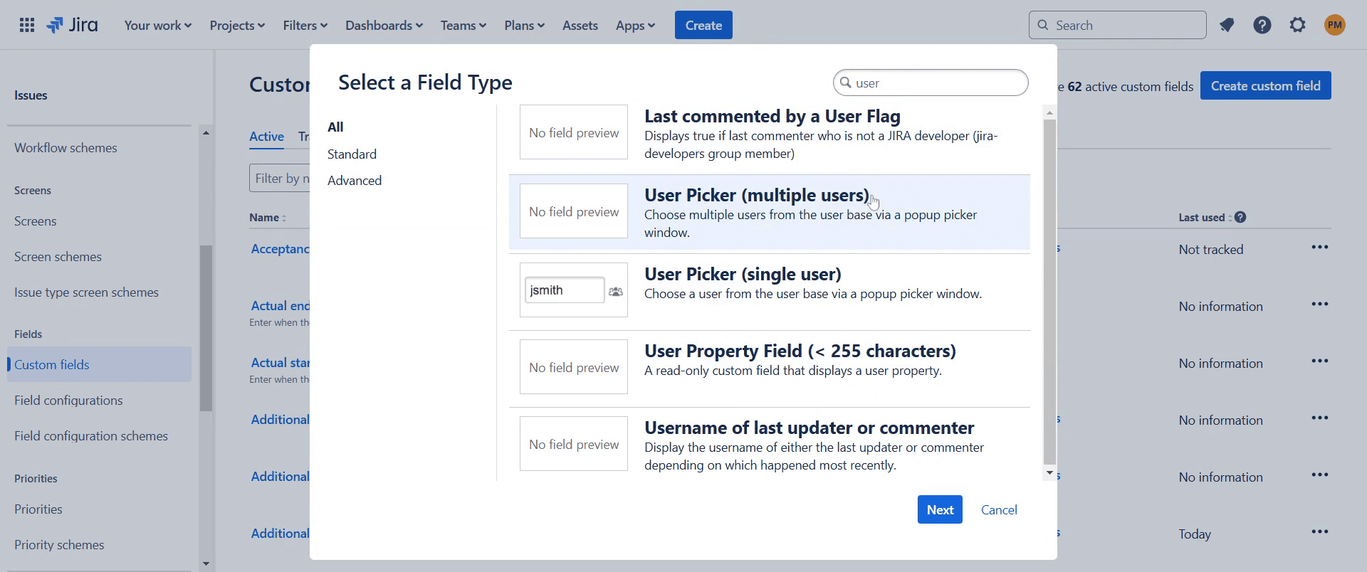 Choose the "User picker" option.
