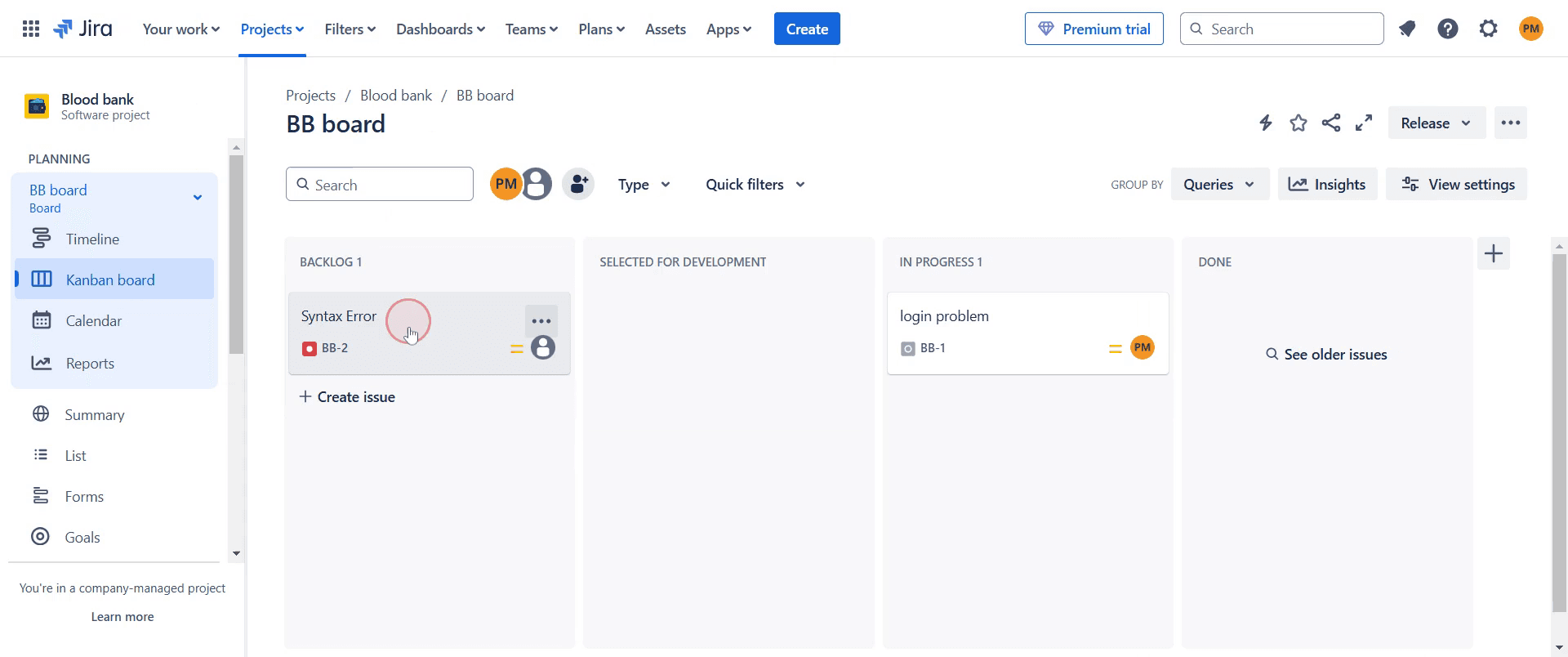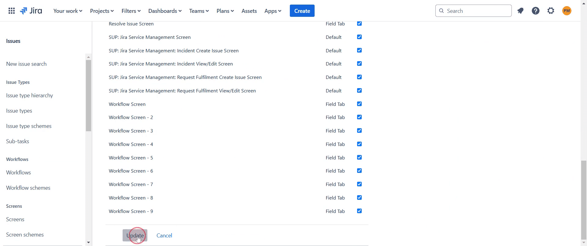 Click on the issue you want to modify.