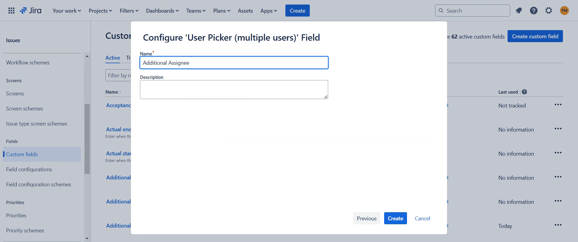 Proceed by selecting "Create custom field."