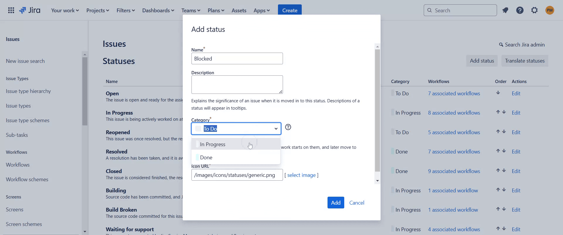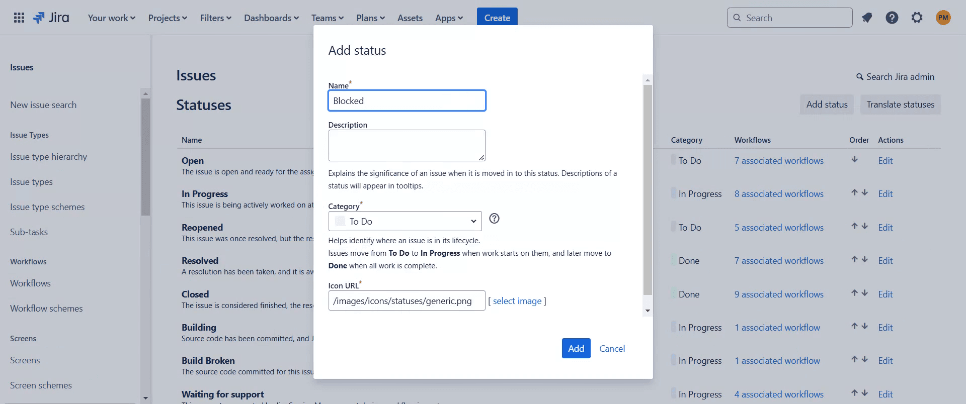 This is a step-by-step guide on how to add a blocked status in Jira.
