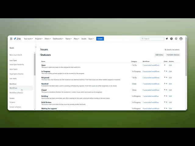 This process will guide how to add blocked status in Jira. You will navigate through the settings to configure and customize the issue statuses according to your requirements.