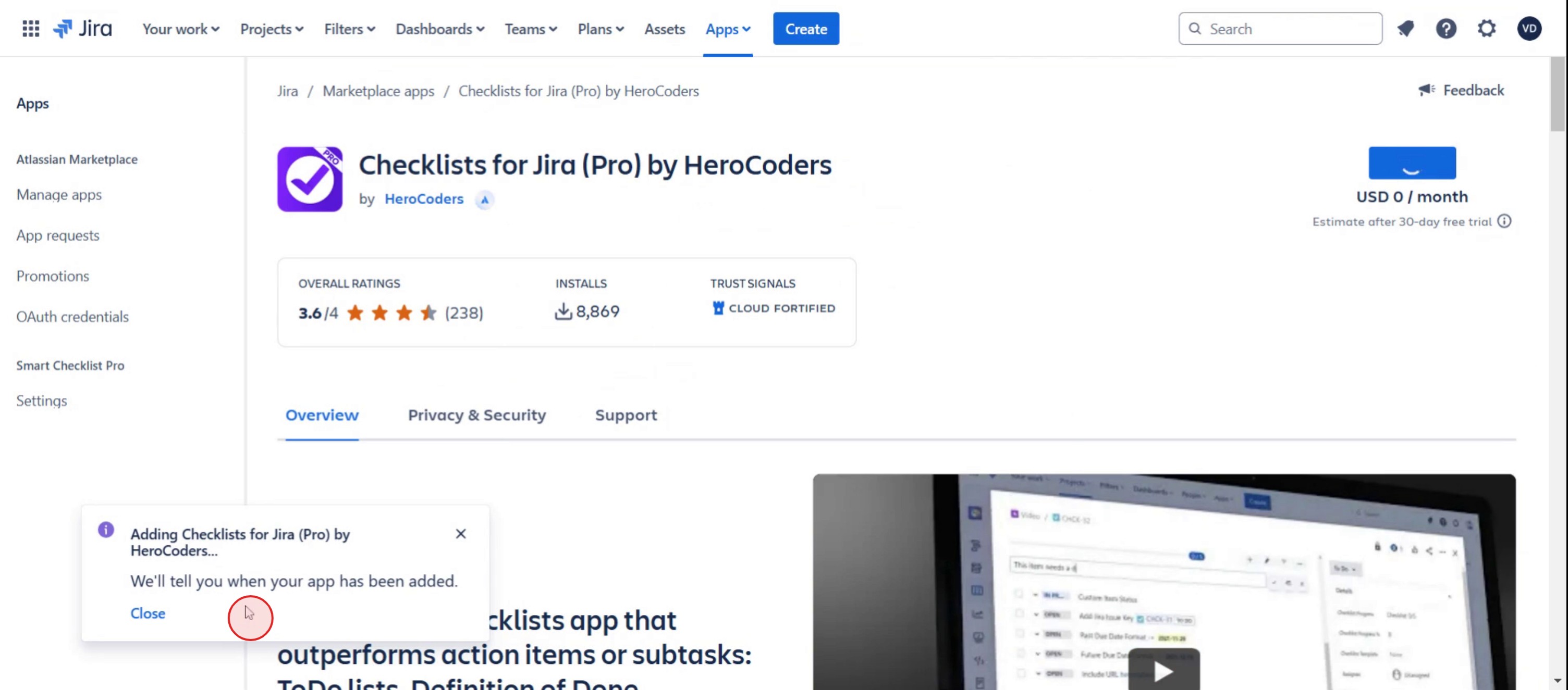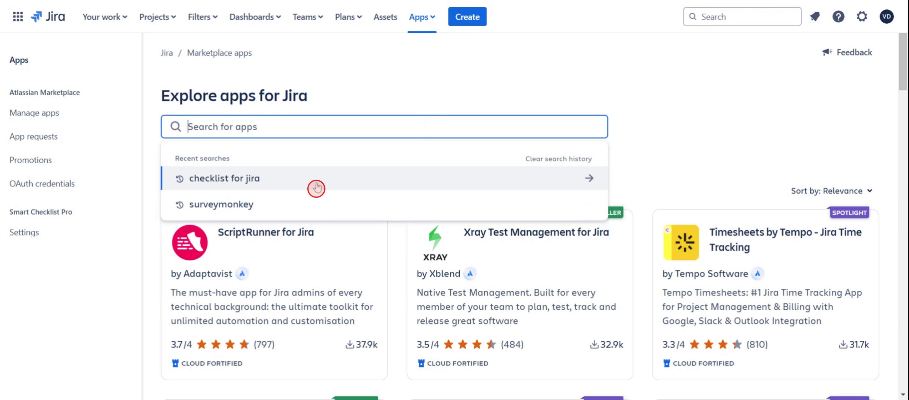 Click on checklist for Jira,