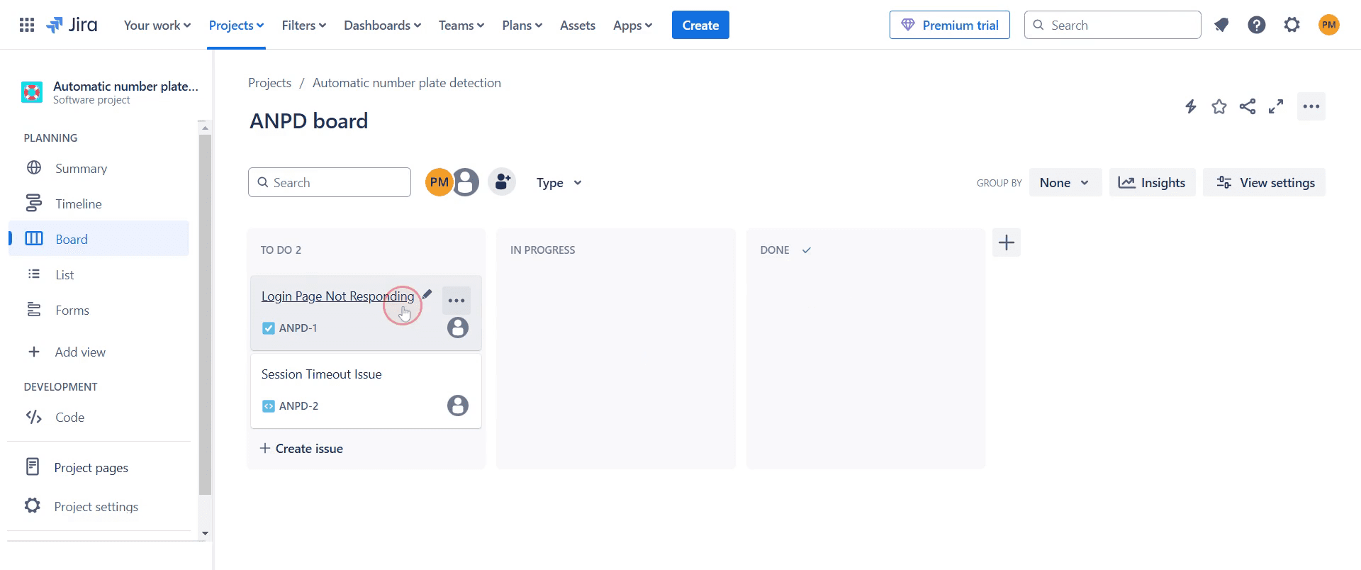Click on the "issue" to open its details.
