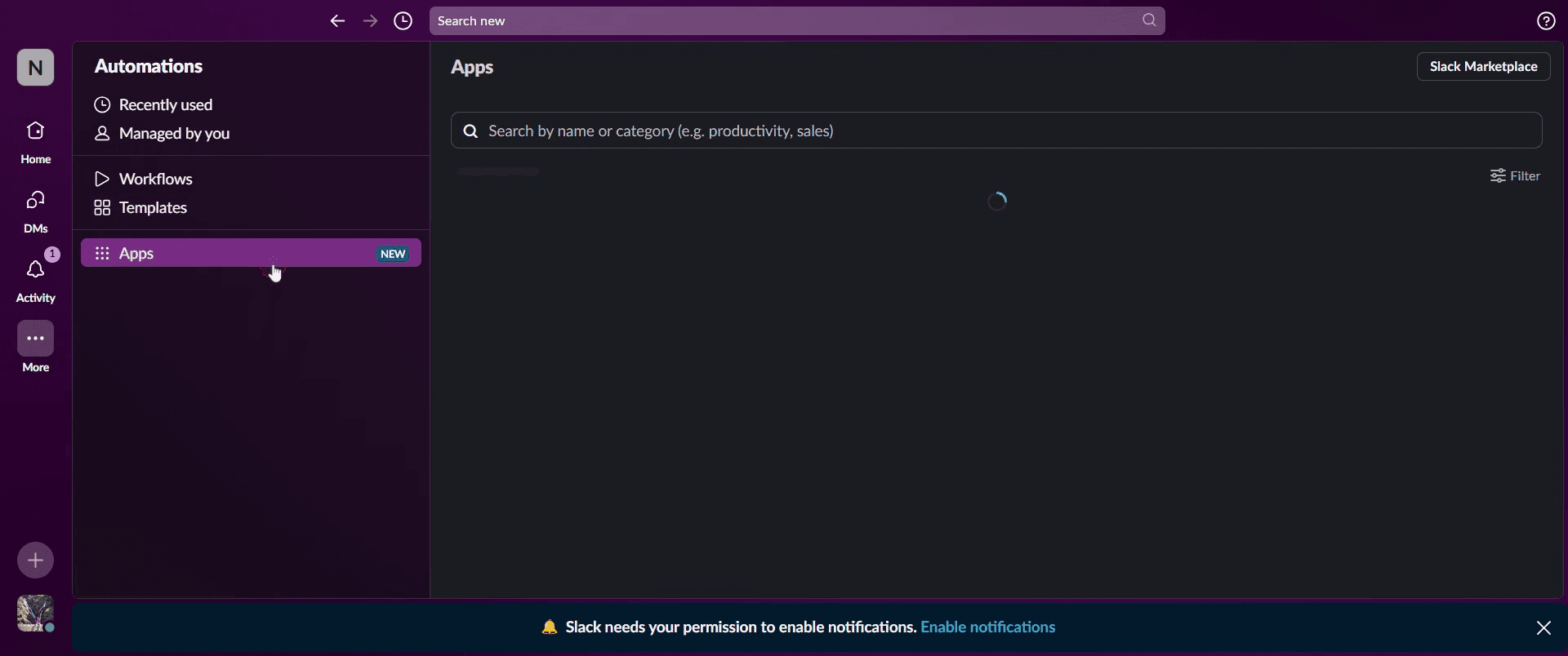 Click on Open in Slack.