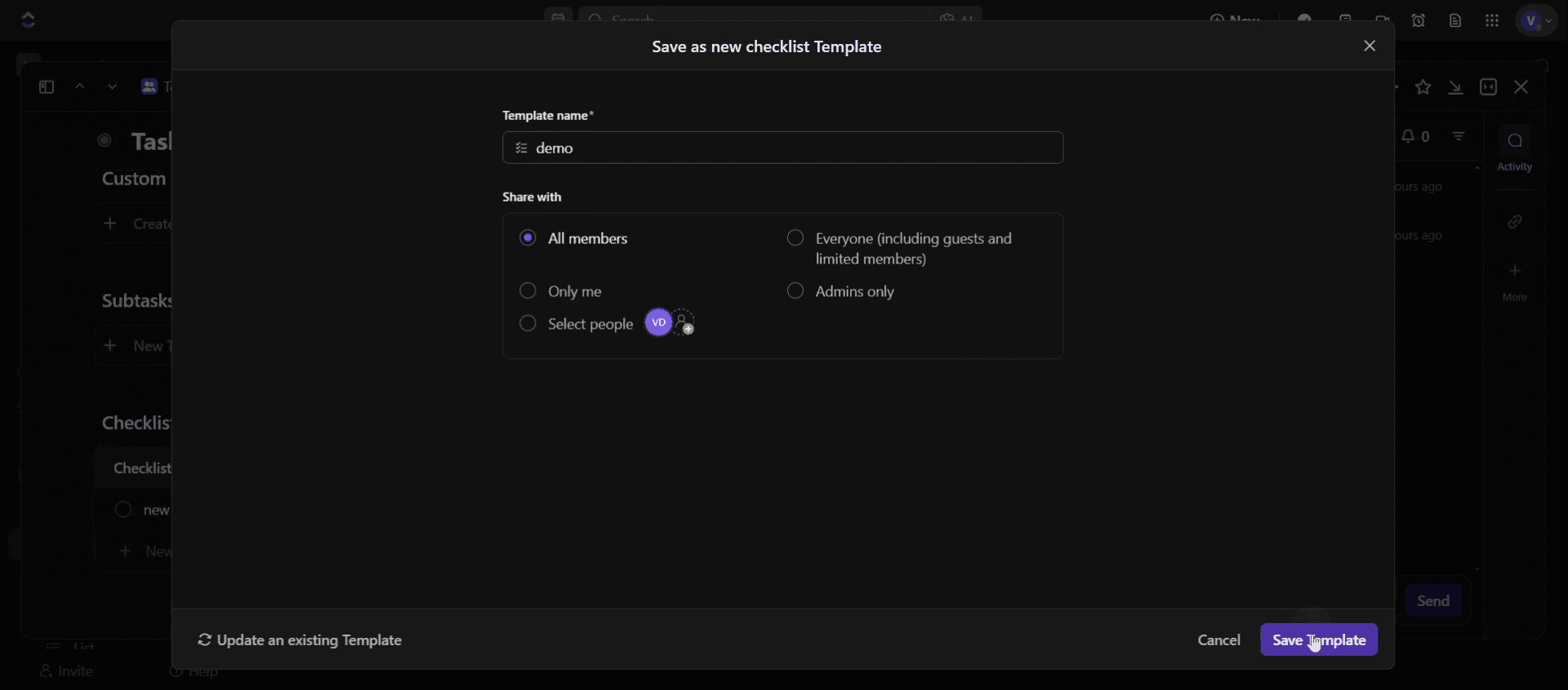 This is the step-by-step process to create a checklist template in Click Up. Let’s look at some tips for it.