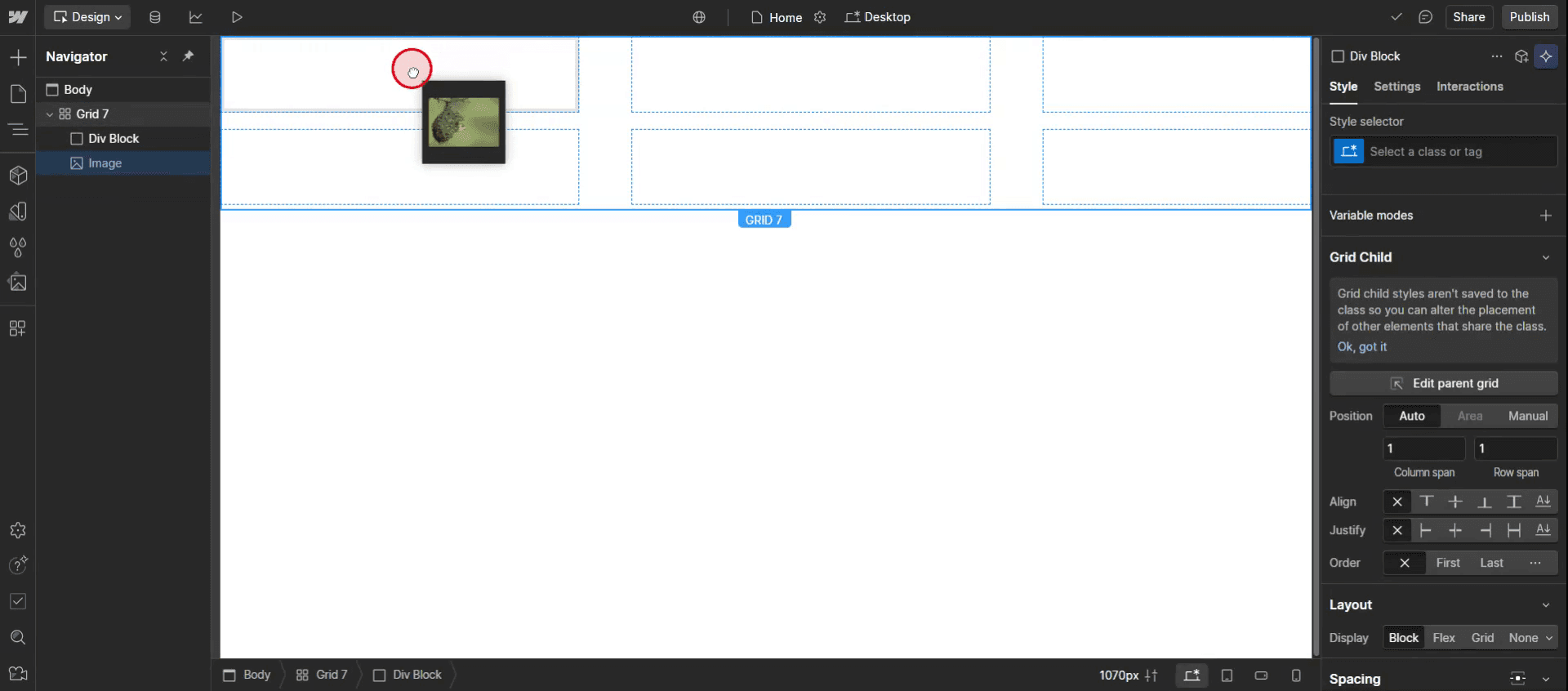 Drag and drop the div Block.
