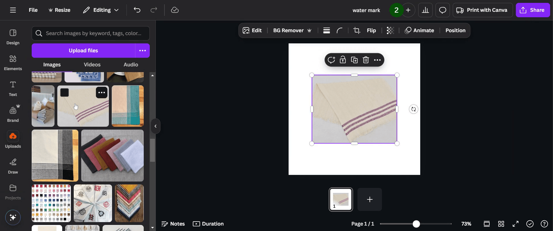 Position it in a corner or across the image to prevent easy removal.How do I apply a watermark to multiple designs?