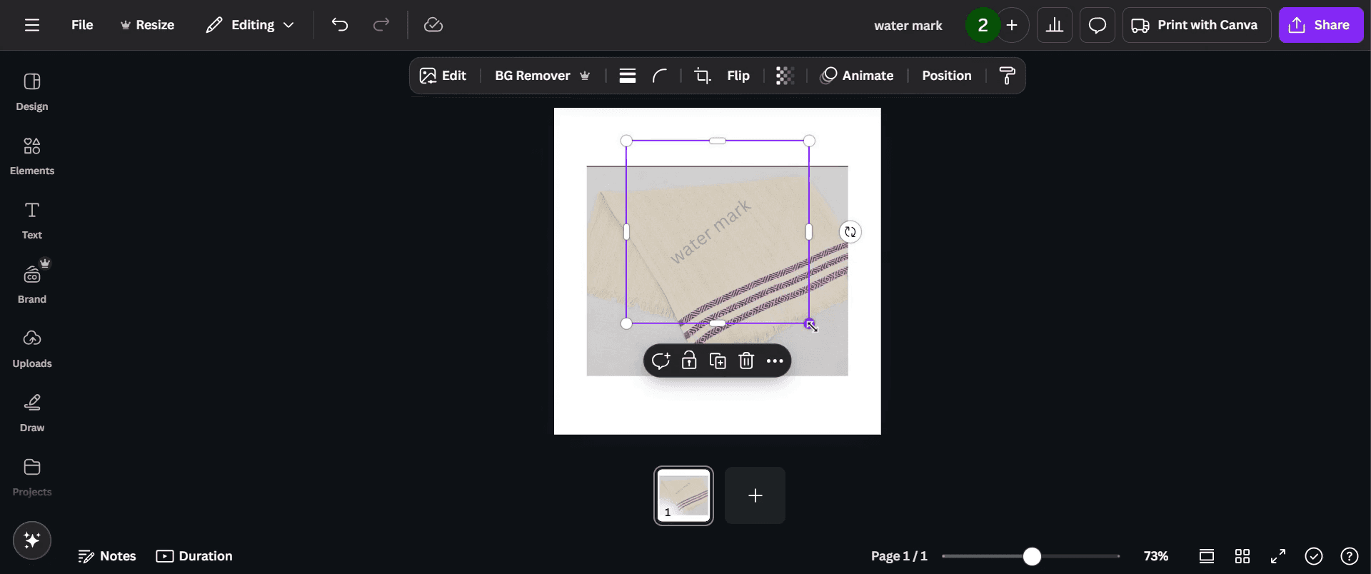 Save it as a PNG file and upload it to Canva for reuse in other designs.Where should I place a watermark on my design?