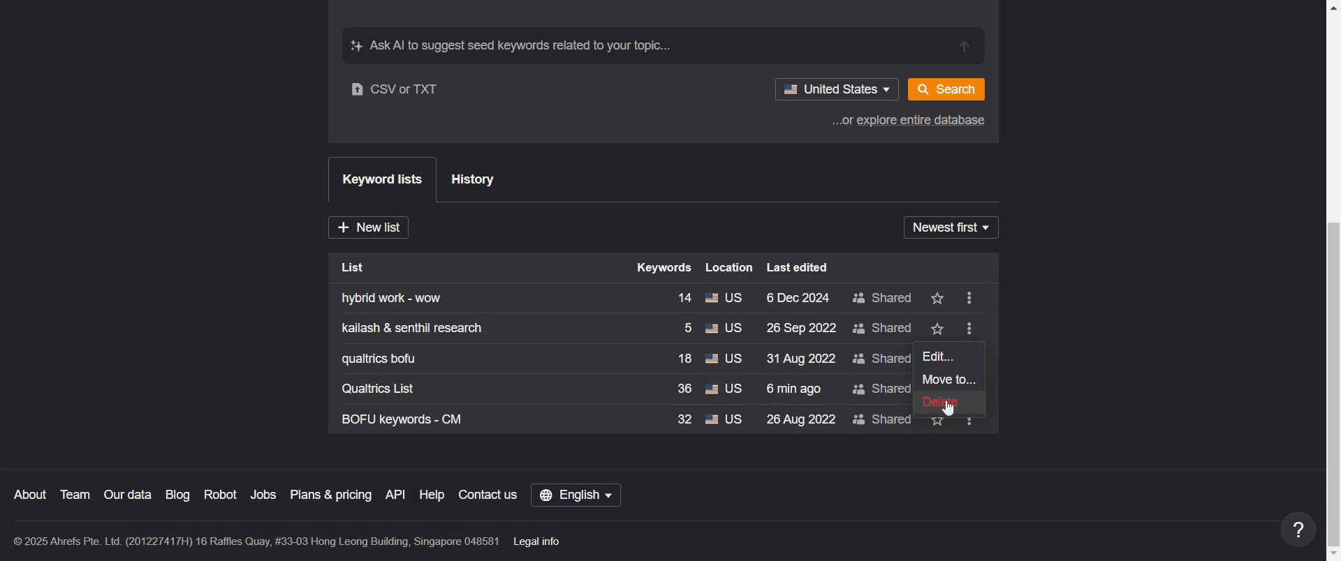 Pro-tips for deleting a list on Ahrefs