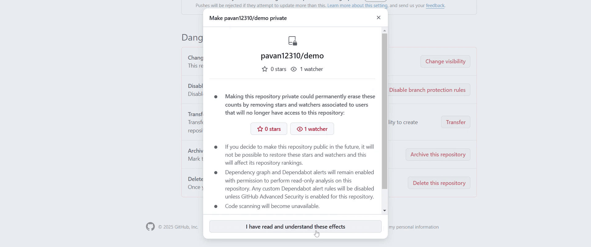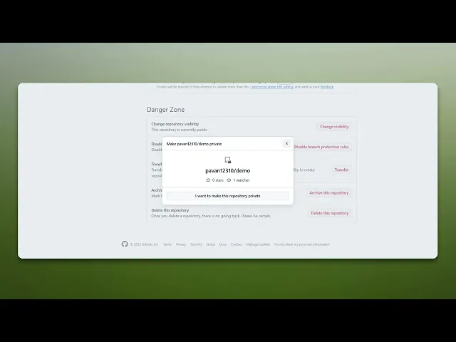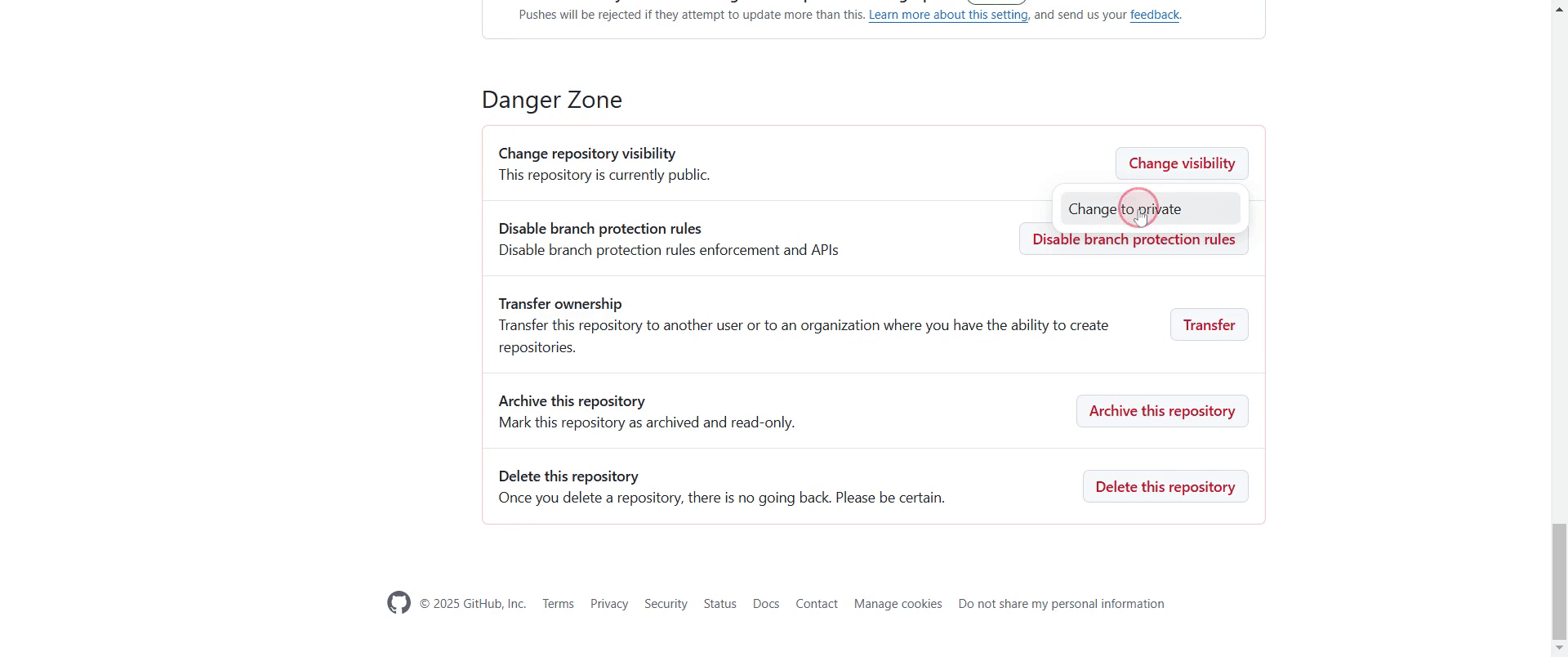 • Convert your repository to private in Settings to restrict access while maintaining full control.