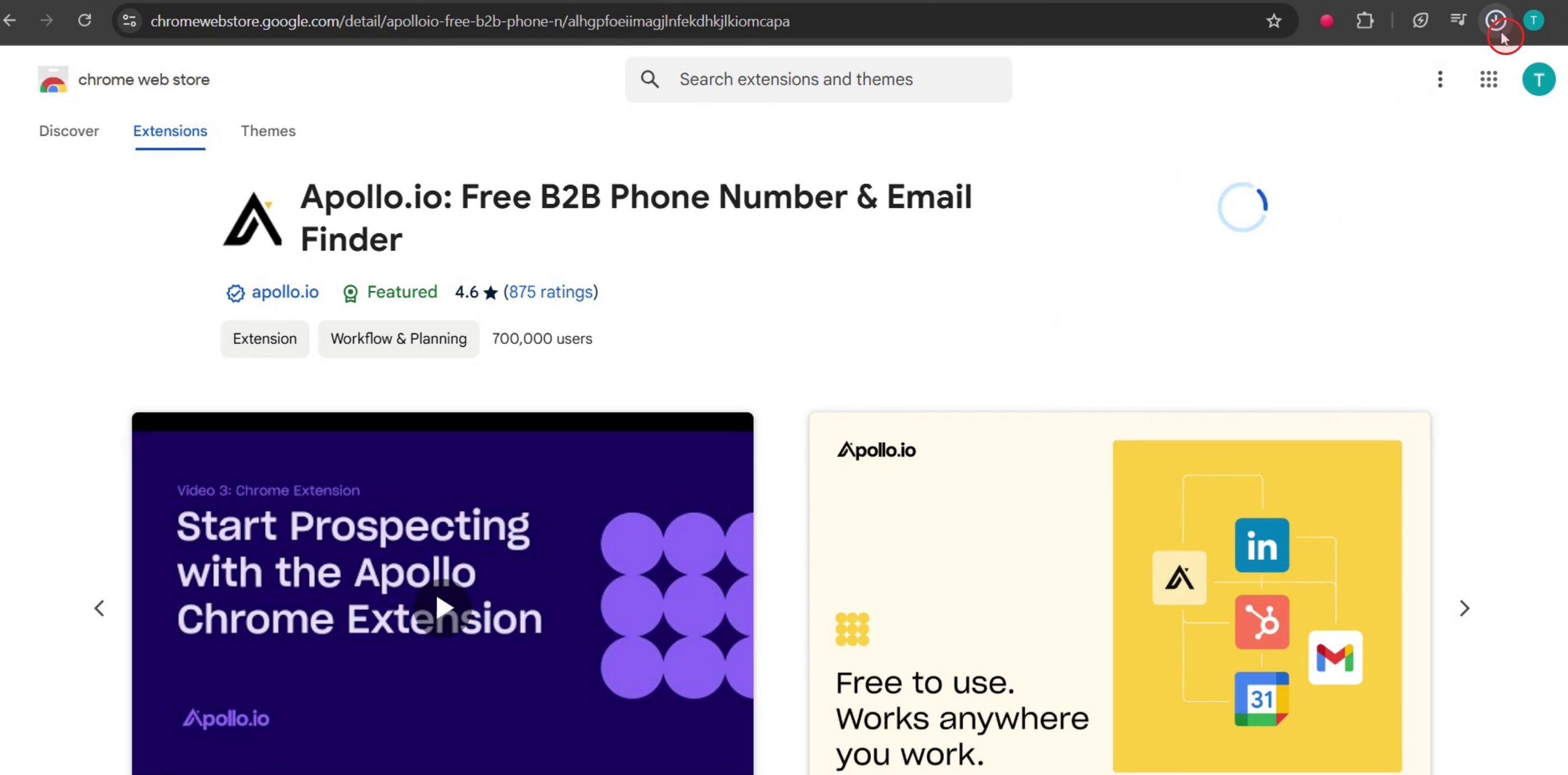 After installation, click the puzzle icon in the Chrome toolbar, find Apollo.io, and pin it for easy access.
