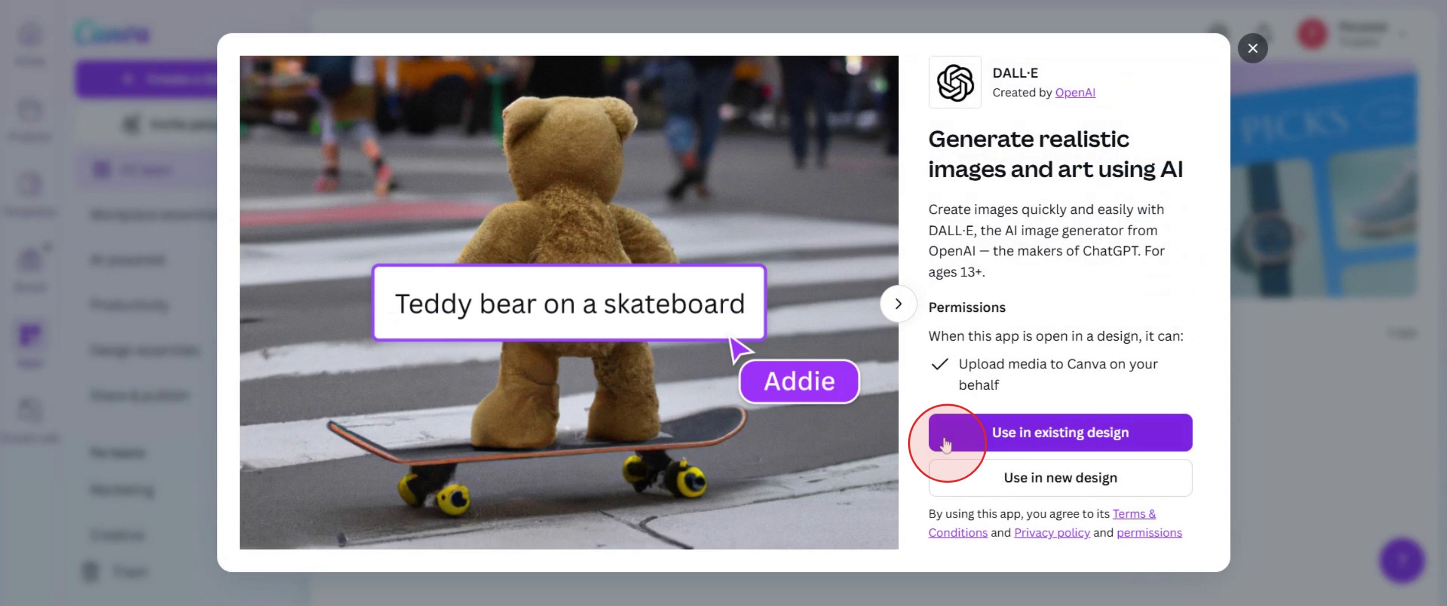 Can Chat-GPT generate text directly inside Canva?
