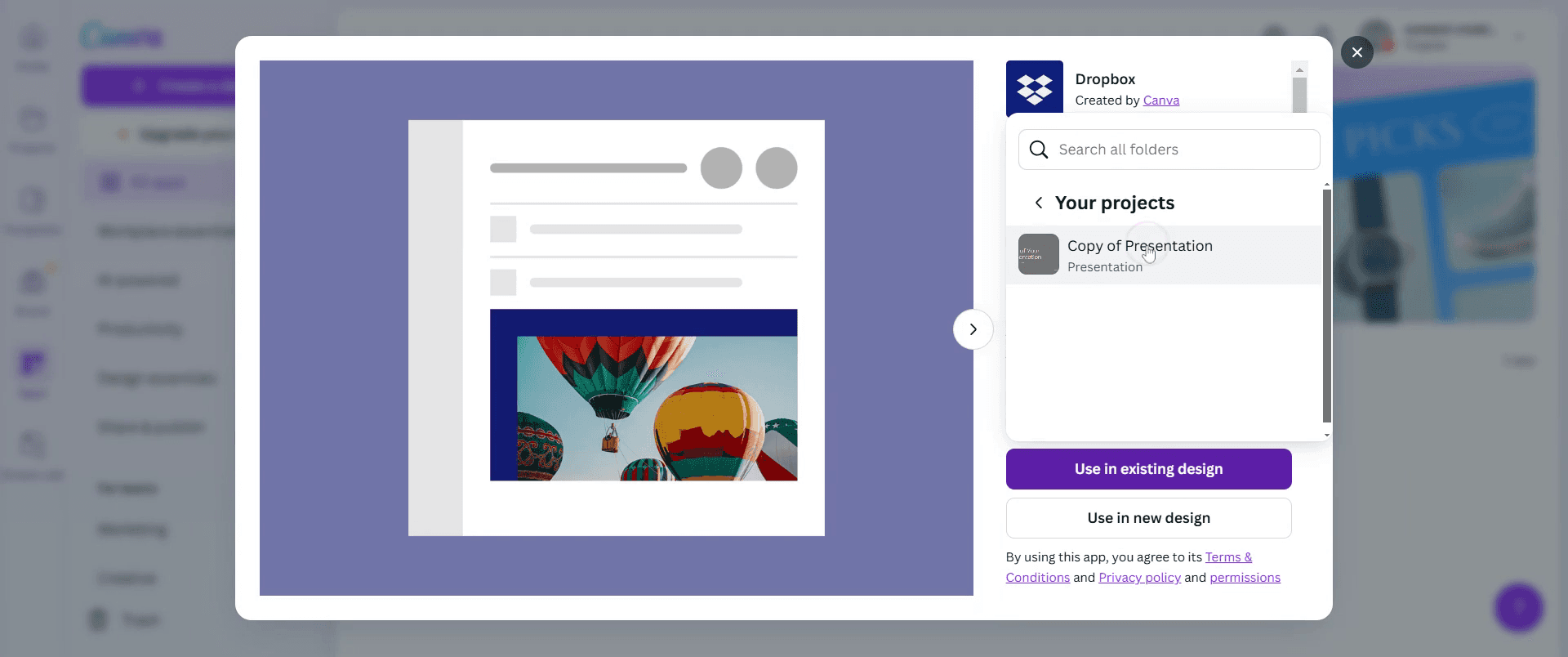 Ensure Dropbox permissions are enabled – Before integrating, grant Canva the necessary permissions to access your Dropbox account for smooth file transfers.