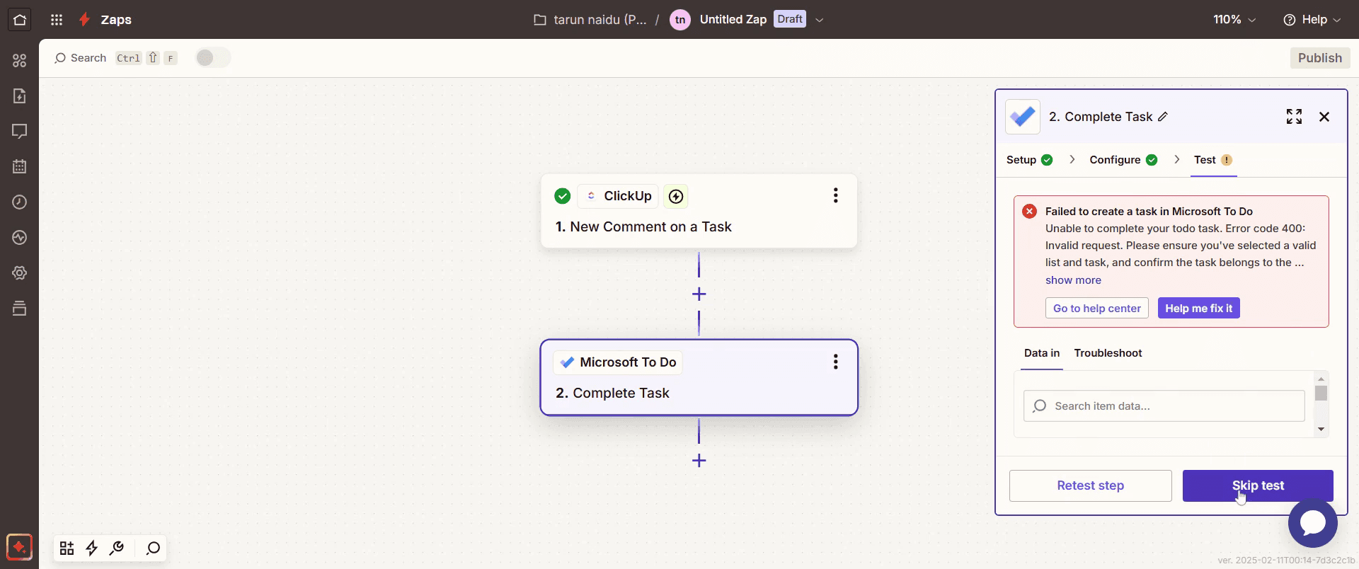 Select Skip Test.