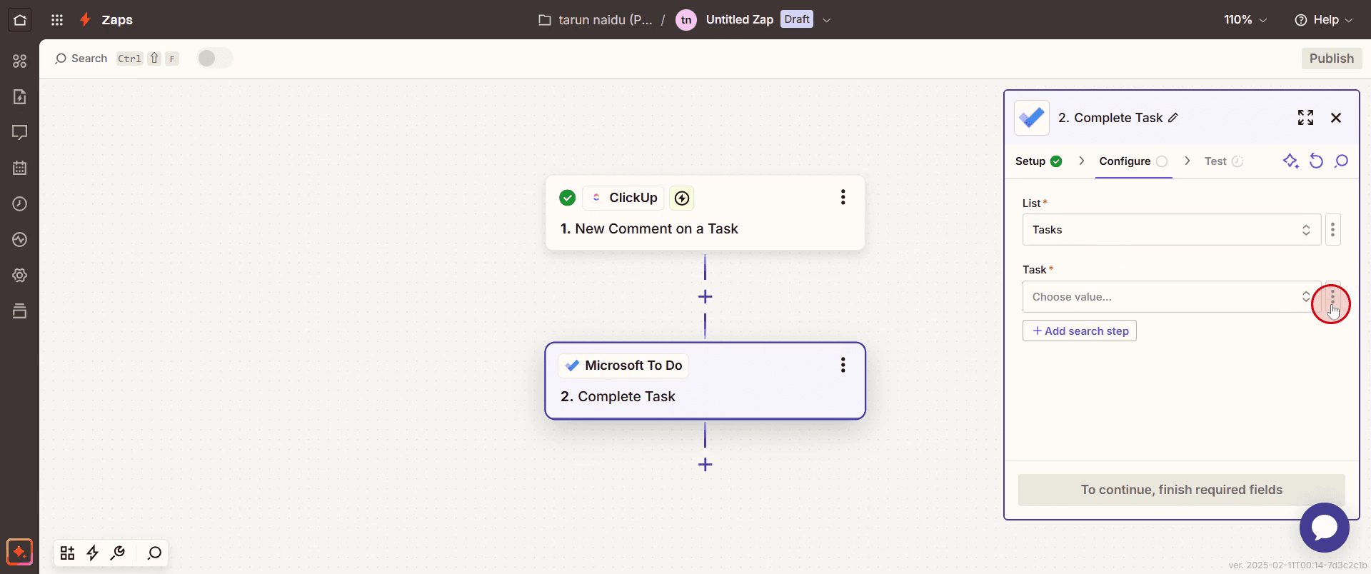 Enter the task details by clicking on the three dots icon,