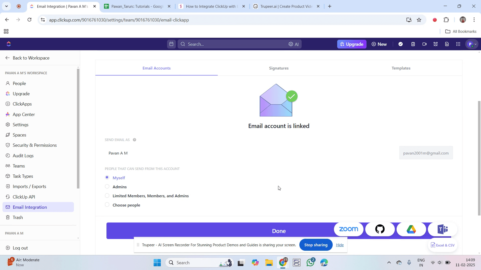 Once loading is complete, you will see that your email account is now successfully linked with ClickUp.