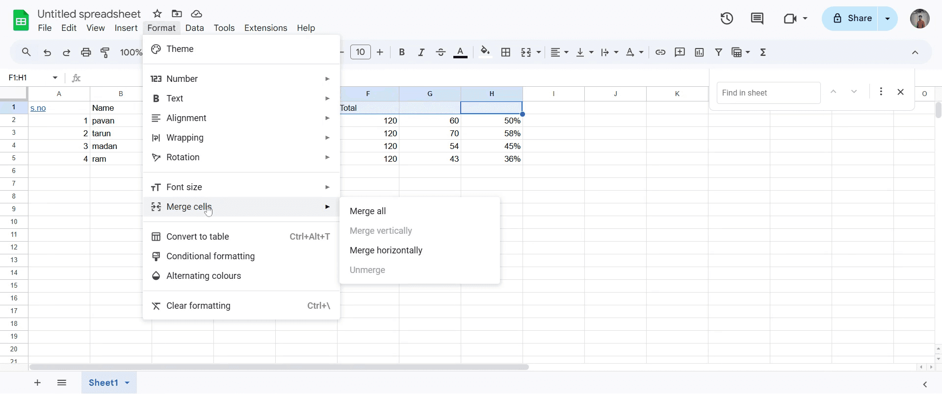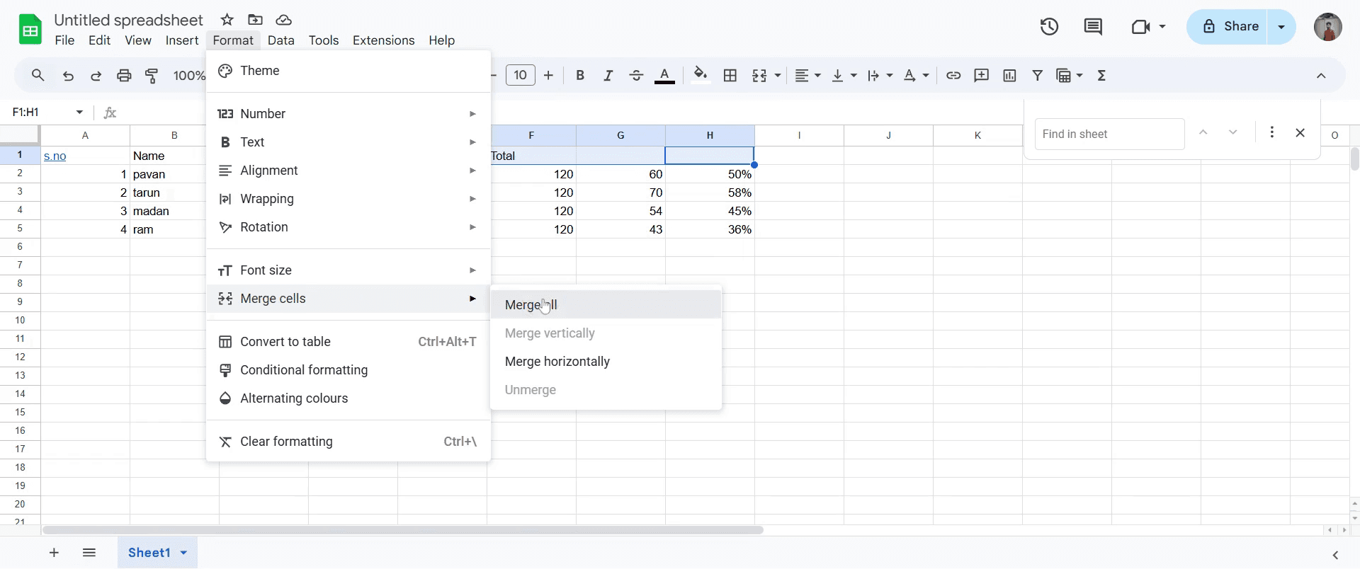 Merging will only keep the data from the top-left cell, so ensure important information is in the first cell before merging.How do I unmerge cells in Google Sheets?