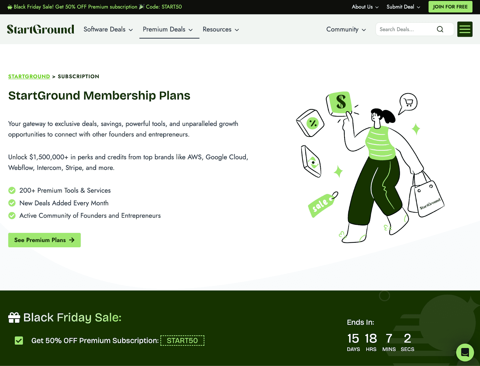 Start Ground is running a major Black Friday Sale with a massive 50% OFF on its Premium yearly membership. With the Premium plan, you unlock exclusive community access with a vast collection of curated software deals that help
