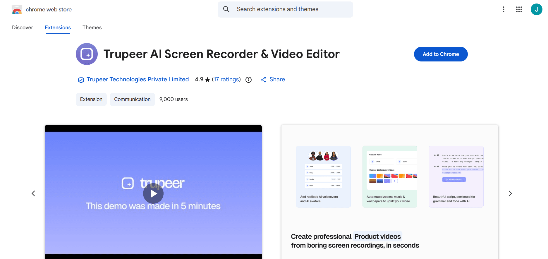 Add screen recorder extension from Chrome Web Store with one click.