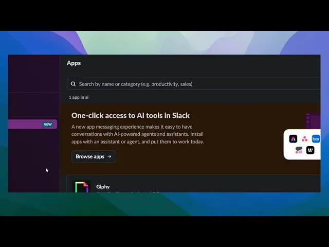 En el menú de búsqueda, escribe GIF/GIPHY para encontrar la aplicación relevante.