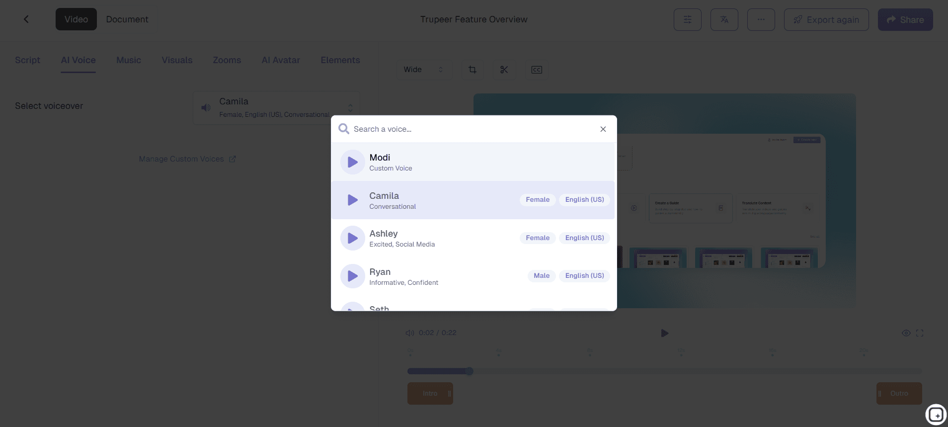 From creating realistic narrations to character voices, Trupeer gives you the flexibility and control you need, all through AI.